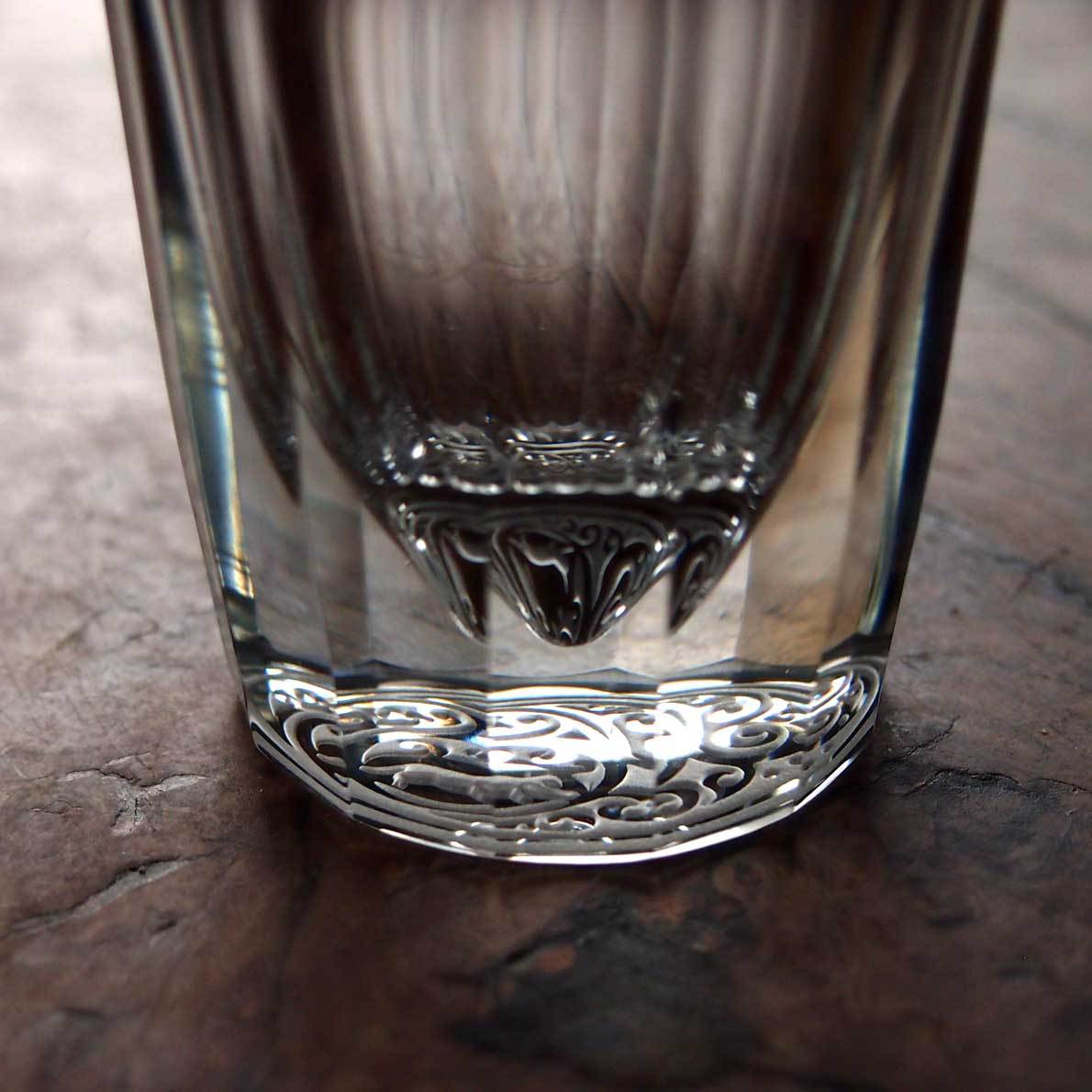 側面、底面すべてカットし磨き上げた、ずっしりと重い透明のショットグラス(トルコ製生地)。
