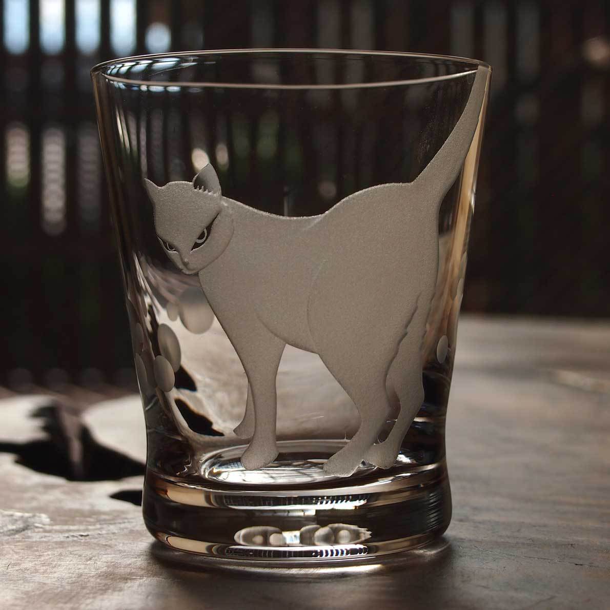 威嚇するような、、誘うような、、眼力バツグンねこのロックグラス。