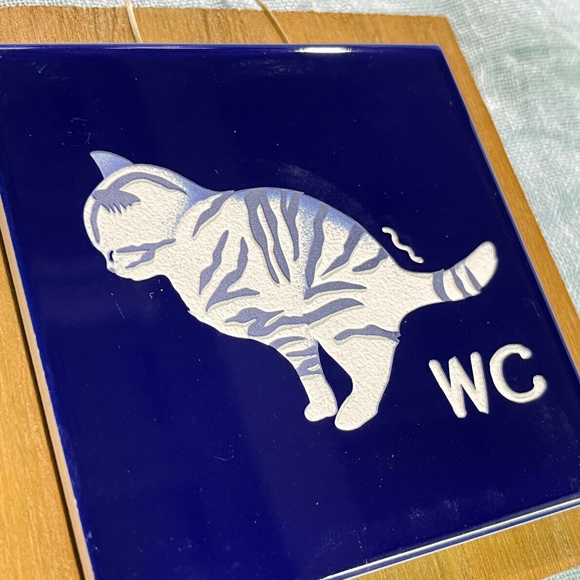 ウ◯チ中の猫の姿をサンドブラスト彫刻しました。