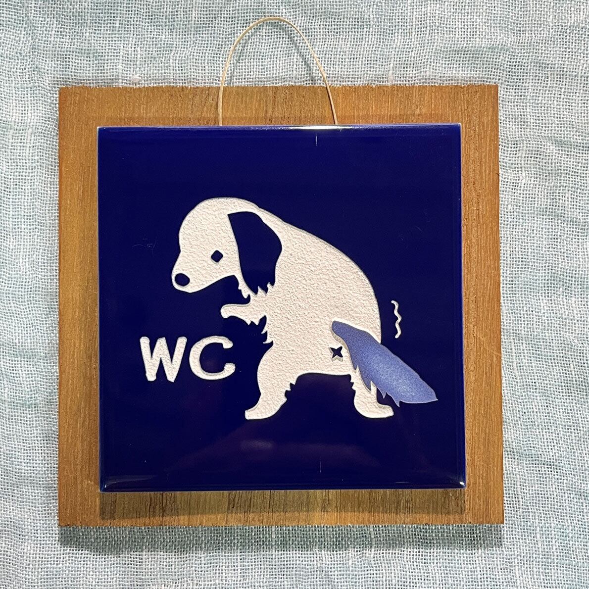 ウ◯チ中のミニチュアダックスの姿をサンドブラスト彫刻しました。